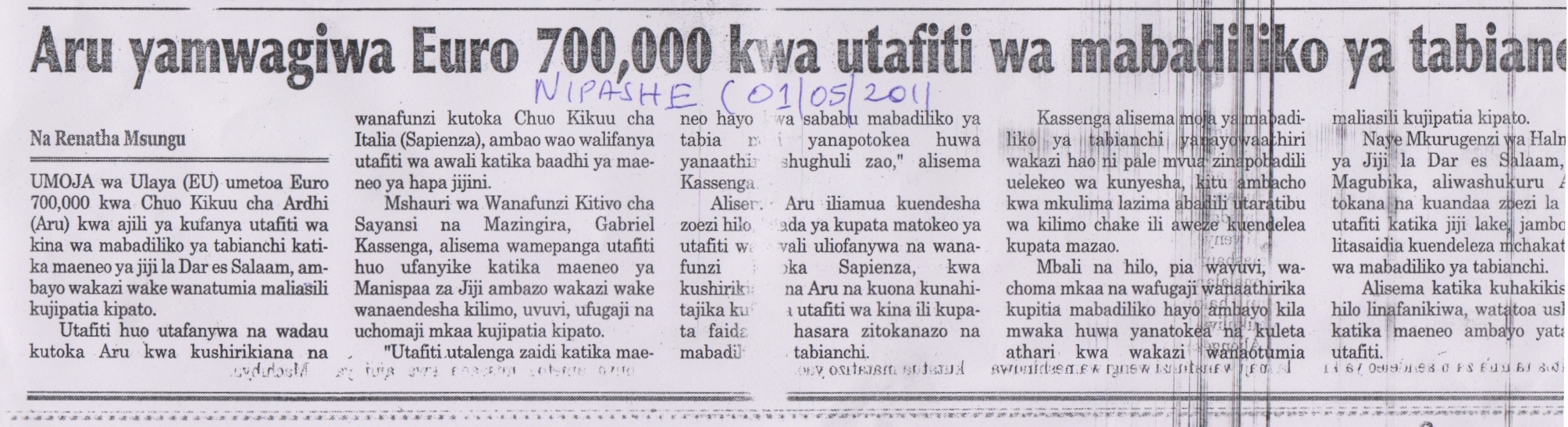 Macchi, S., Kassenga, G., Building knowledge for climate change adaptation in coastal peri-urban Dar es Salaam, Tanzania